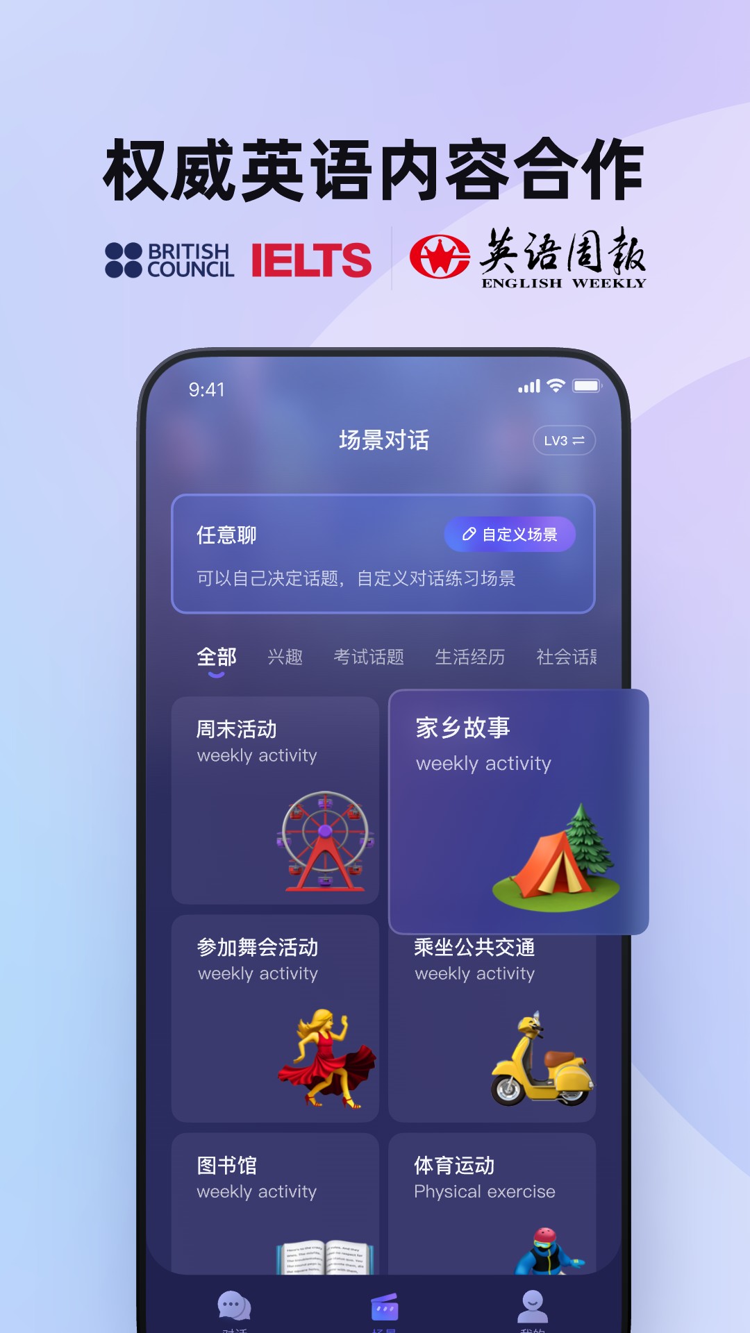 - 多元对话场景:覆盖多个主题和子场景,支持自定义话题,创造贴合实际生活的对话语境。