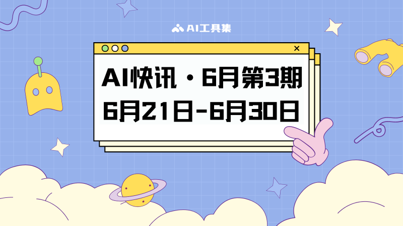 AI工具集采用每月3期的版面集合,每日更新AI行业的最新快讯,本期为6月第3期(6月21日到6月30日)的AI行业新闻集合。