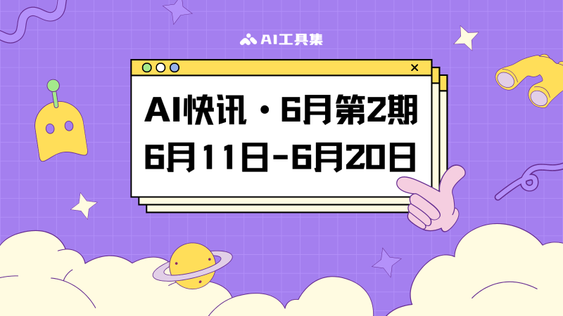 AI工具集采用每月3期的版面集合,每日更新AI行业的最新快讯,本期为6月第2期(6月11日到6月20日)的AI行业新闻集合。
