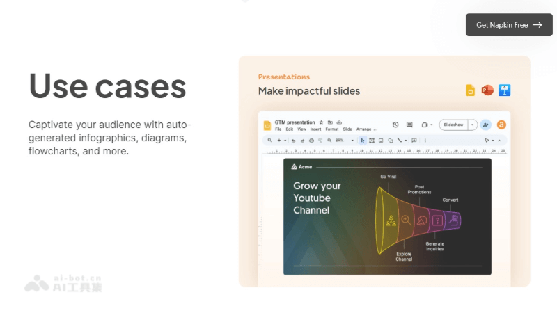- 文本到视觉的转换:Napkin能直接从用户输入的文本生成相关的视觉效果。