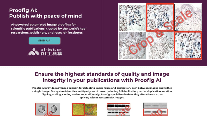 Proofig是一个检测科研图像是否造假或抄袭的AI工具,致力于通过先进的人工智能和计算机视觉技术,确保科研图像的真实性和完整性。该工具不仅保障了出版物的质量标准,同时也显著降低了因图像剽窃或篡改而导致的撤稿风险。用户只需轻松上传论文图片或PDF文件,即可获得一份详尽的分析报告,为后续的人工编辑审核提供坚实的基础。Proofig的智能检测系统不仅提升了科研图像审核的效率,也确保了科研成果的可信度和学术出版的严谨性。