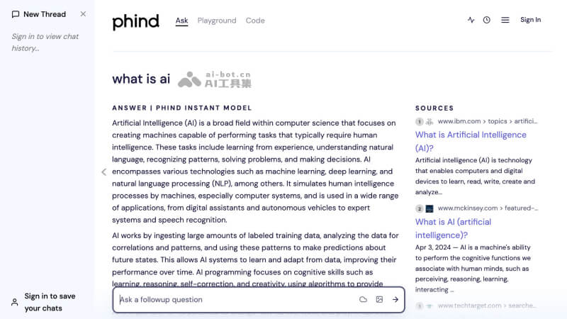 - 即用即搜:Phind无需用户注册或下载任何软件,直接在网页上输入问题即可快速获得答案。