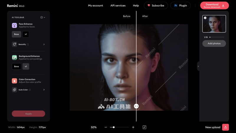 - 商业版:周付9.99美元、月付24.99美元、年付249.99美元,不限制照片处理张数,支持批量上传和商业使用