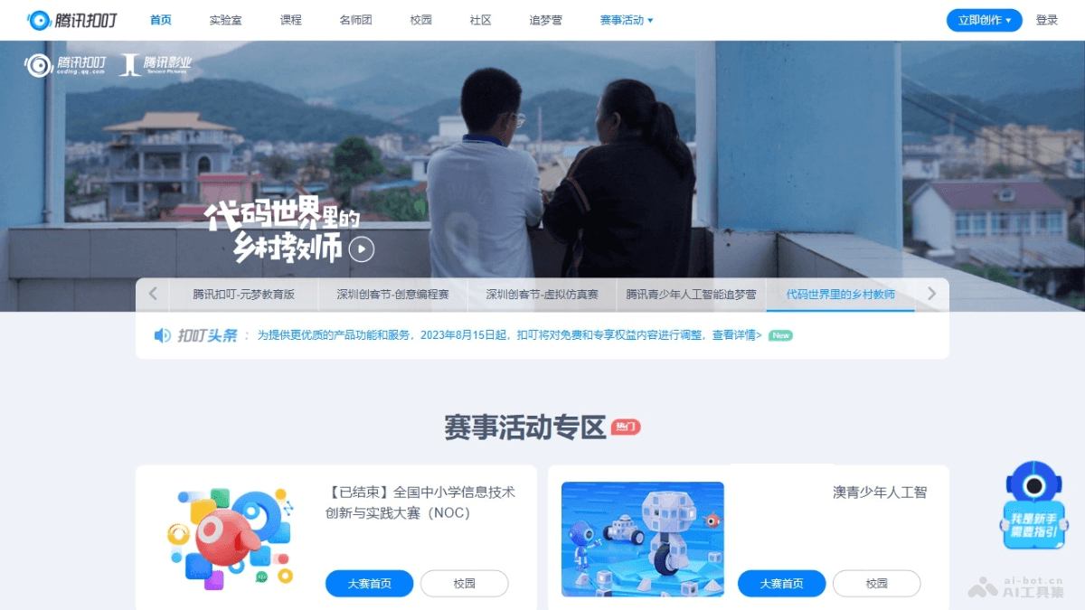 腾讯扣叮是腾讯推出的青少年编程教育平台。基于腾讯在游戏和AI领域的技术优势,为6至18岁的孩子们提供有趣、互动的学习环境,在数字世界中探索和学习编程。平台包括虚拟仿真实验室,支持无实体硬件的编程学习,基于图形化编程工具和仿真场景运行,孩子们能轻松入门、逐步提升编程技能。腾讯扣叮提供丰富的课程内容、赛事活动和创作分享,培养孩子们的计算思维和创新能力。基于平台,孩子们能学习编程,参与到各种编程挑战和创作中,展示才华和创意。